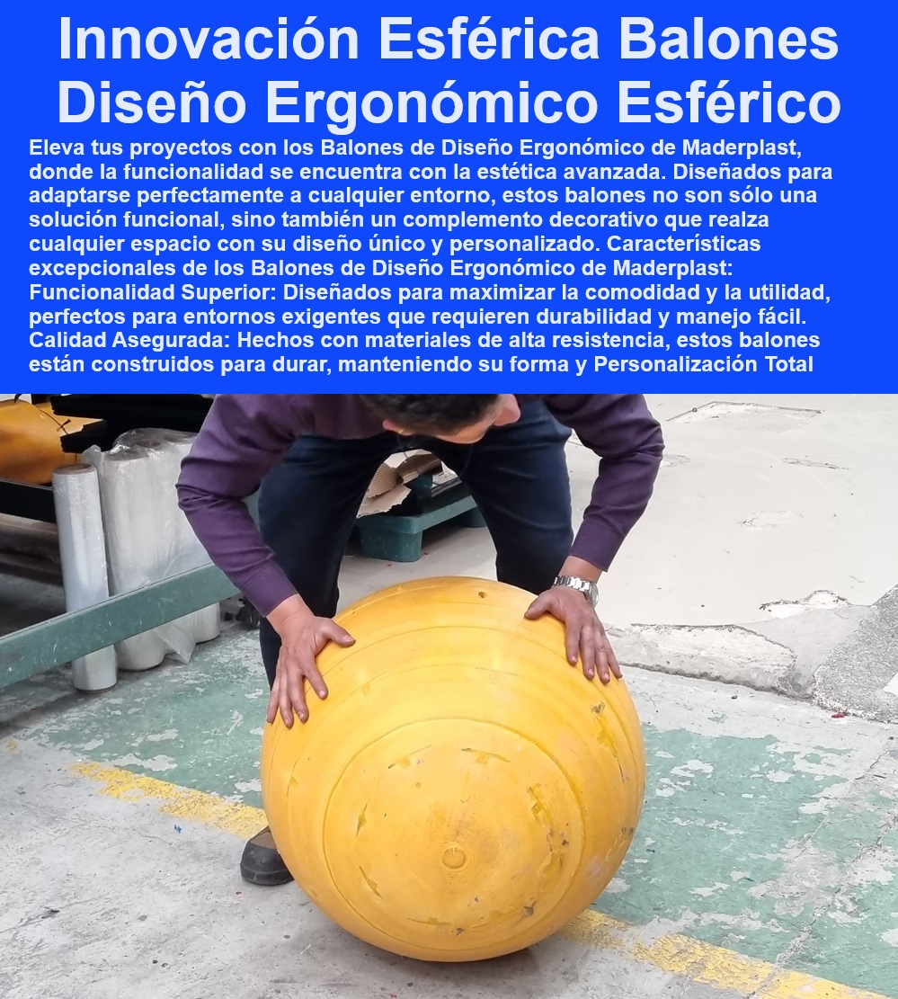 Balones Innovadores Bola Diseño Ergonómico Balón Gigante Bolas Esferas Maderplast 0 Diseño disruptivo en cada detalle esférico 0 Balones esféricos diseñados para impacto visual 0 Bolas decorativas con sistemas anclaje ocultos 0 Tecnología 0