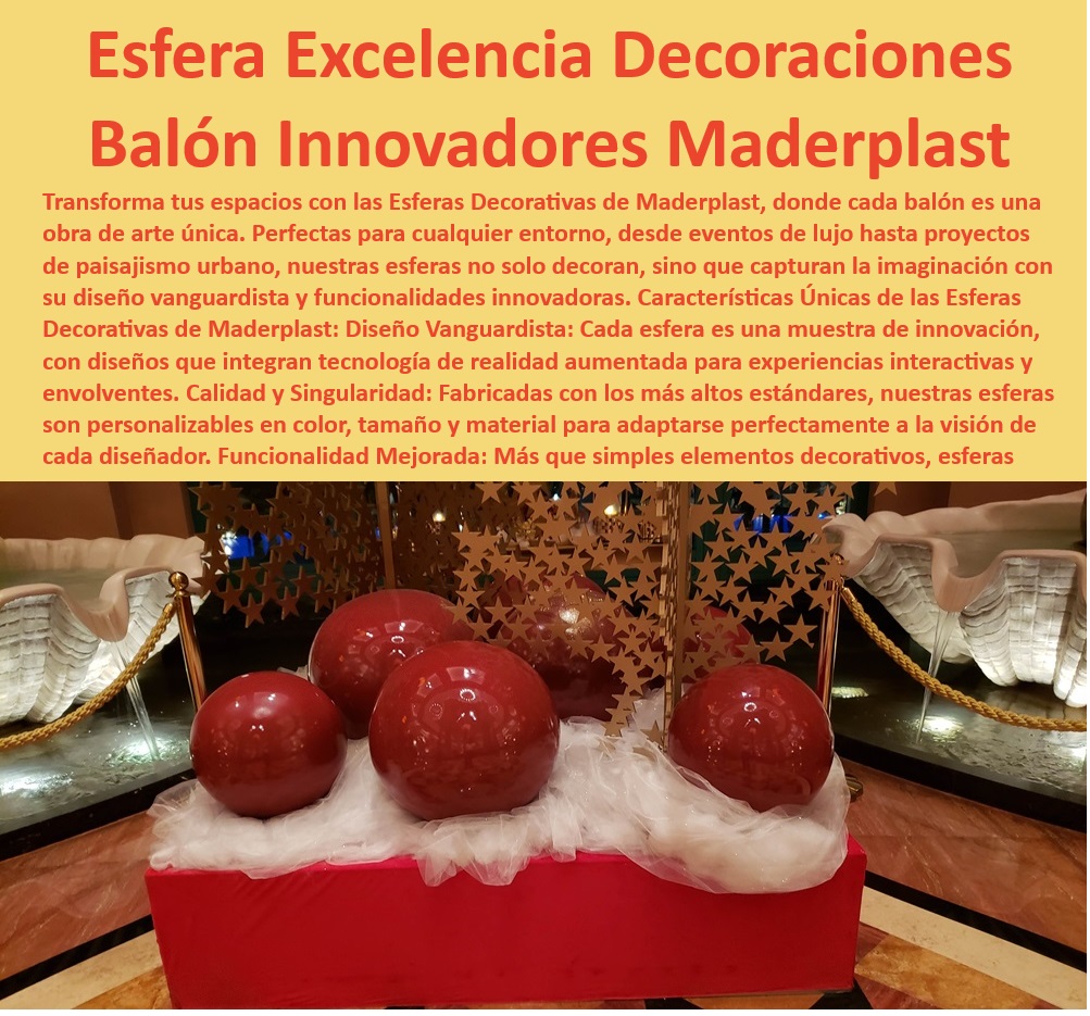 Balones innovadores 0 Balones gigantes Bolas decorativas esferas Maderplast 0 Esferas escultóricas que añaden valor estético 0 Estética Balones esféricos con sistemas de sonido integrados 0 Inspiración Bolas esculturales larga durabilidad 0