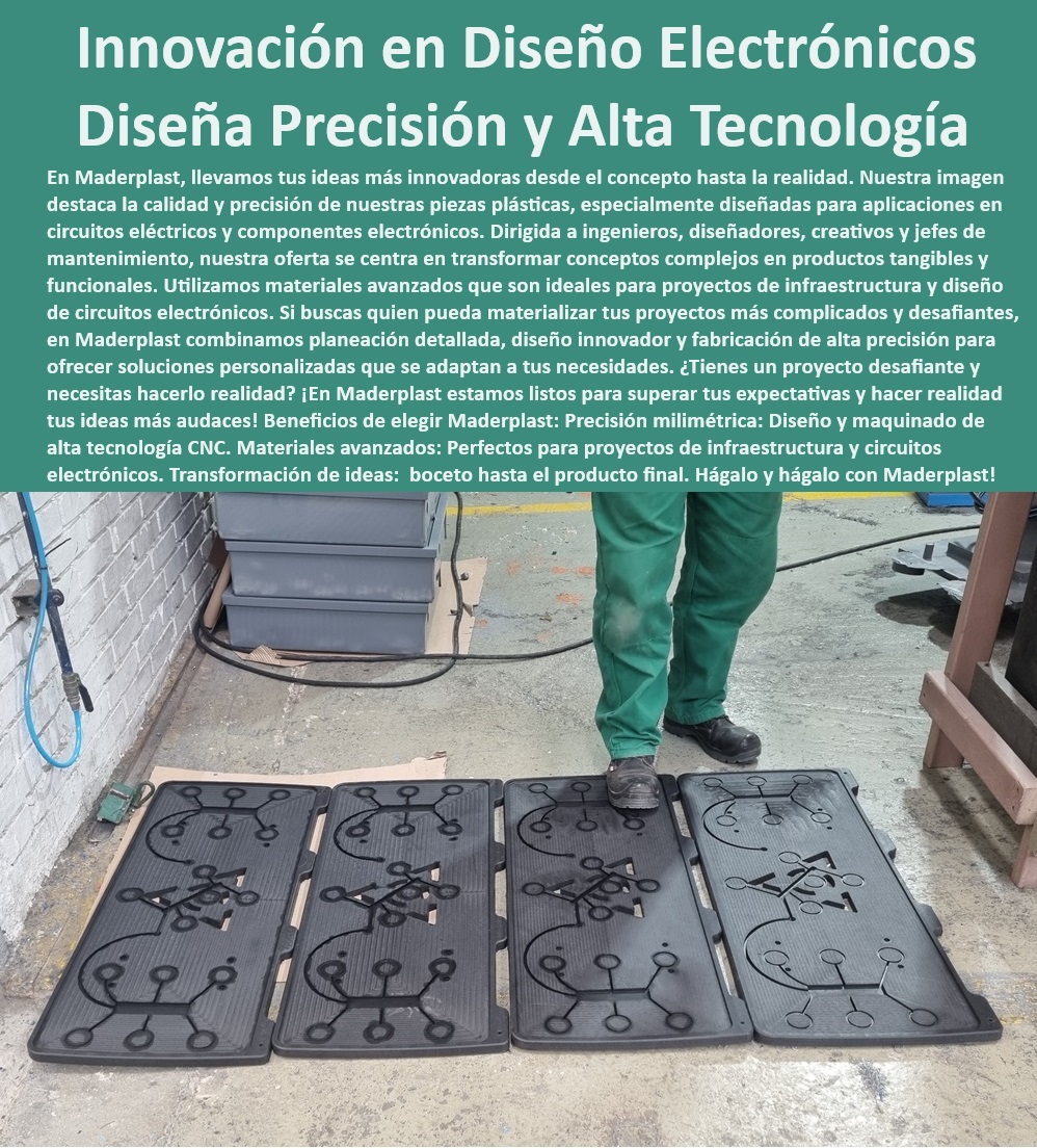 Presentamos nuestras soluciones en la fabricación de piezas plásticas con maquinado de precisión y diseño CNC. En Maderplast, nos especializamos en convertir tus ideas más innovadoras en realidad, utilizando materiales sostenibles y tecnologías avanzadas. Si eres ingeniero, diseñador, creativo o jefe de mantenimiento, este es tu lugar para encontrar productos únicos y personalizados que se adapten a tus necesidades específicas. La imagen muestra nuestra capacidad para crear desde componentes industriales hasta piezas de diseño decorativo, todo con un acabado impecable. Nuestro enfoque se centra en ofrecer alternativas sostenibles sin sacrificar la calidad o la precisión, asegurando que cada producto sea funcional y estéticamente agradable. ¿Buscas quien materialice tus proyectos más complejos? ¡En Maderplast estamos listos para aceptar el desafío y superar tus expectativas! Beneficios de elegir Maderplast: Maquinado de precisión: Cortes CNC exactos para cualquier diseño. Materiales sostenibles:
