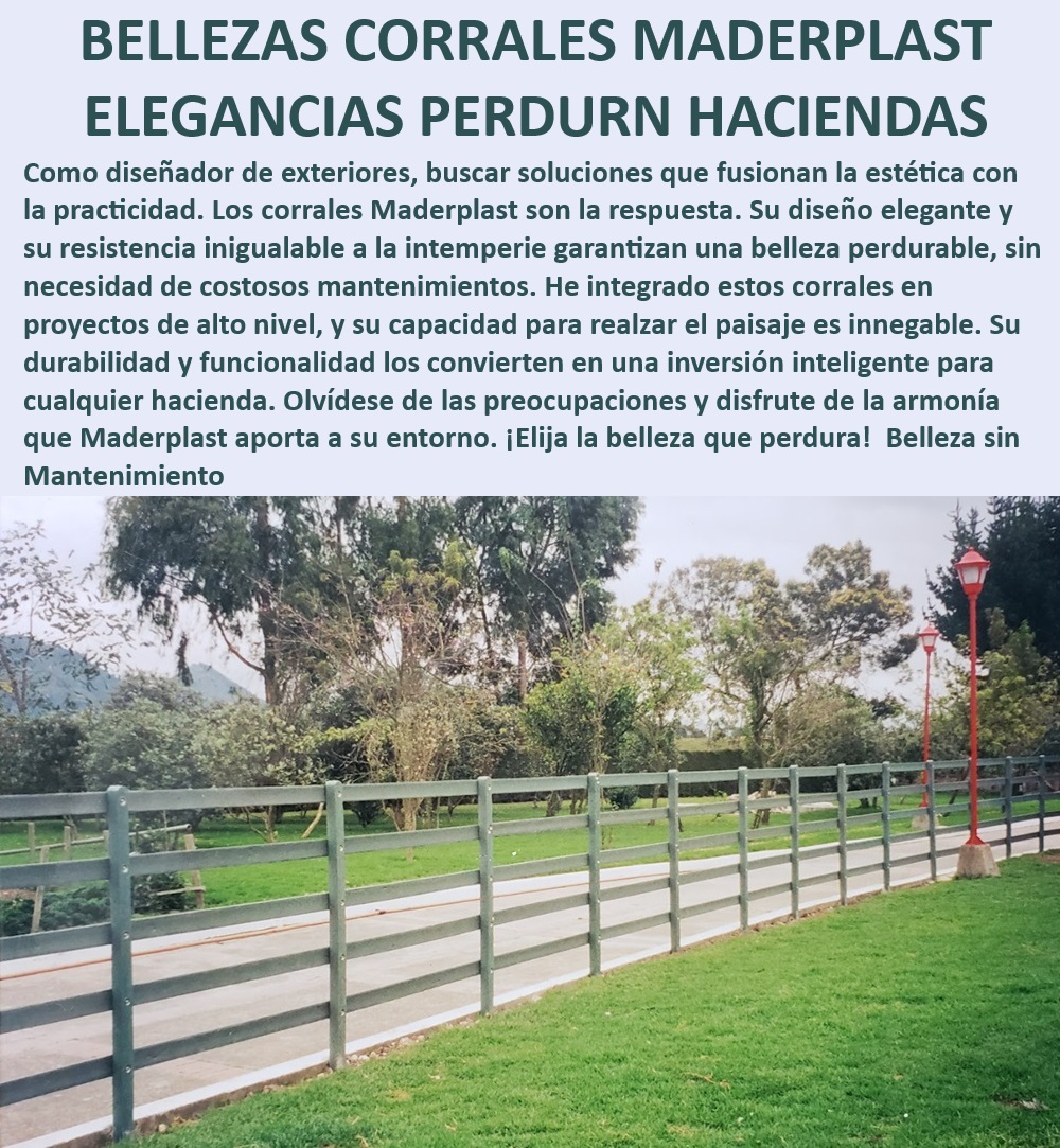 CORRAL MADERPLAST FUNCIONALES, LA COMBINACIÓN PARA SU FINCAS, Como diseñador de exteriores, buscar soluciones que fusionan la estética con la practicidad. Los corrales Maderplast son la respuesta. Su diseño innovador y materiales de alta calidad garantizan una durabilidad excepcional, incluso en condiciones climáticas adversas. La ventilación eficiente y la facilidad de manejo reducen el estrés del ganado, promoviendo su bienestar y maximizando la productividad. He sido testigo de cómo los corrales Maderplast optimizan el trabajo diario, facilitando el manejo y mejorando la eficiencia en cada etapa. Si busca una solución confiable y duradera que impulse su negocio ganadero, no busque más: Maderplast es la elección del experto. Invierta en calidad, invierta en Maderplast. Elegancia Funcional